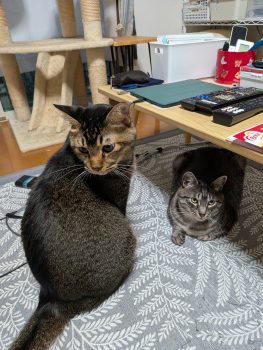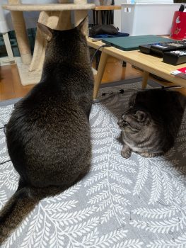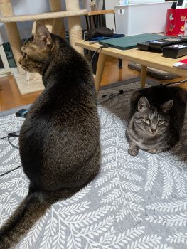 にゃんズ、今日はお姉ちゃんが有休で家にいるからお世話係をお願いしますね。
