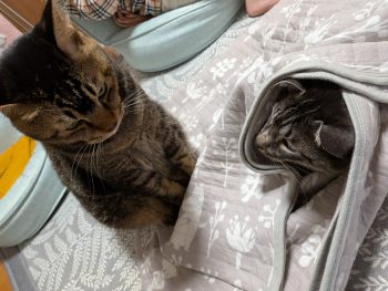 帰宅して夕食をあげた後、いつものにゃんプロが始まりました。