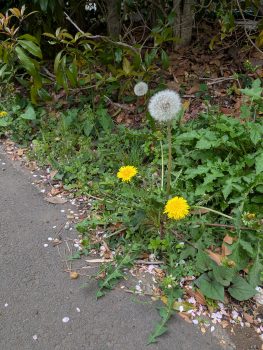 構内でちらほら咲いていた桜はもう散り始めていて、タンポポも綿毛になっていました。