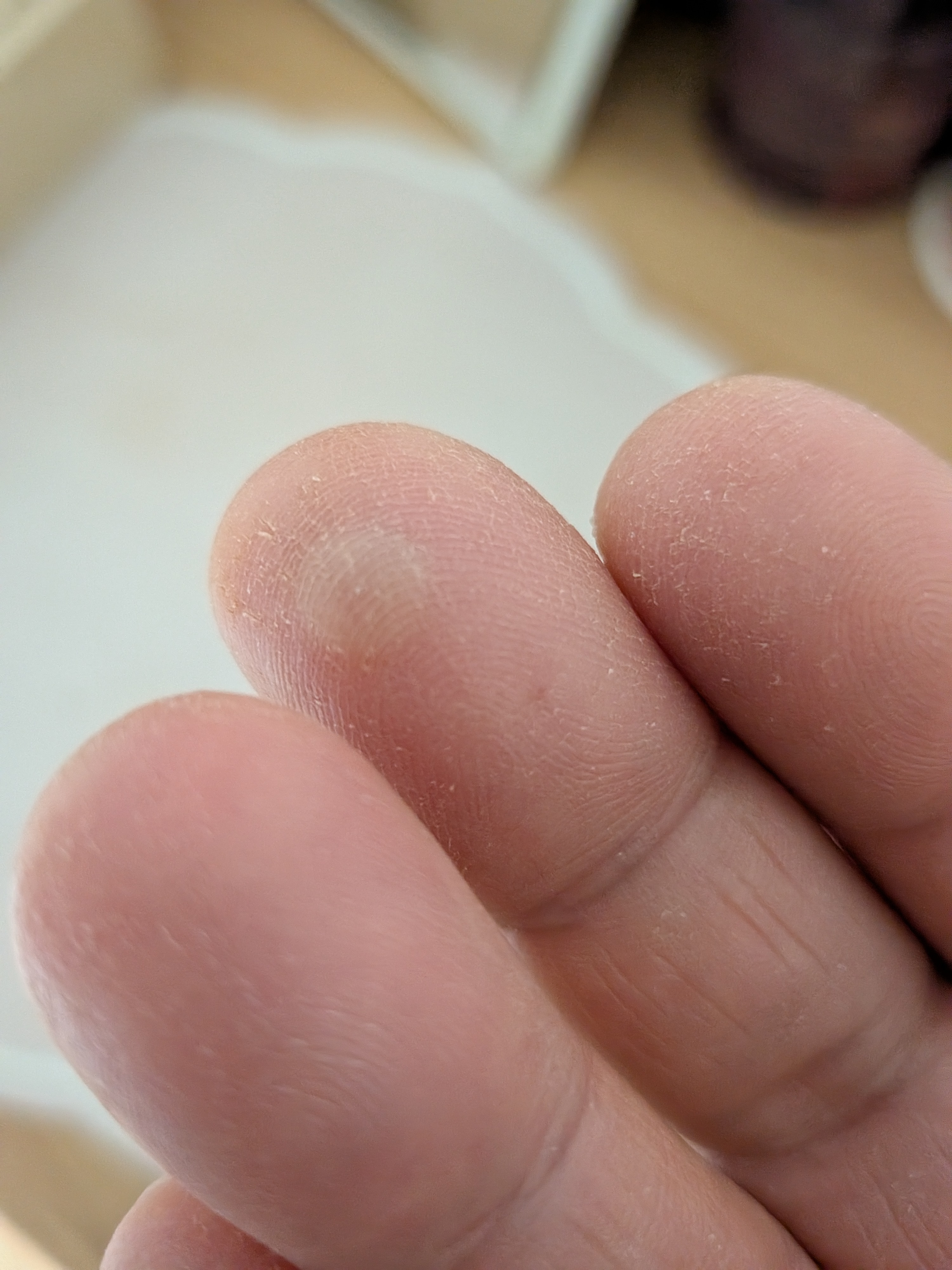 写真を撮ったら、指先もガサガサに荒れているのがよくわかります。