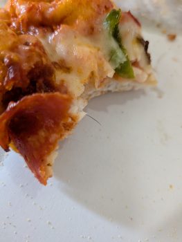 なんと!娘が食べていたピザから毛髪のようなものが発見されました。