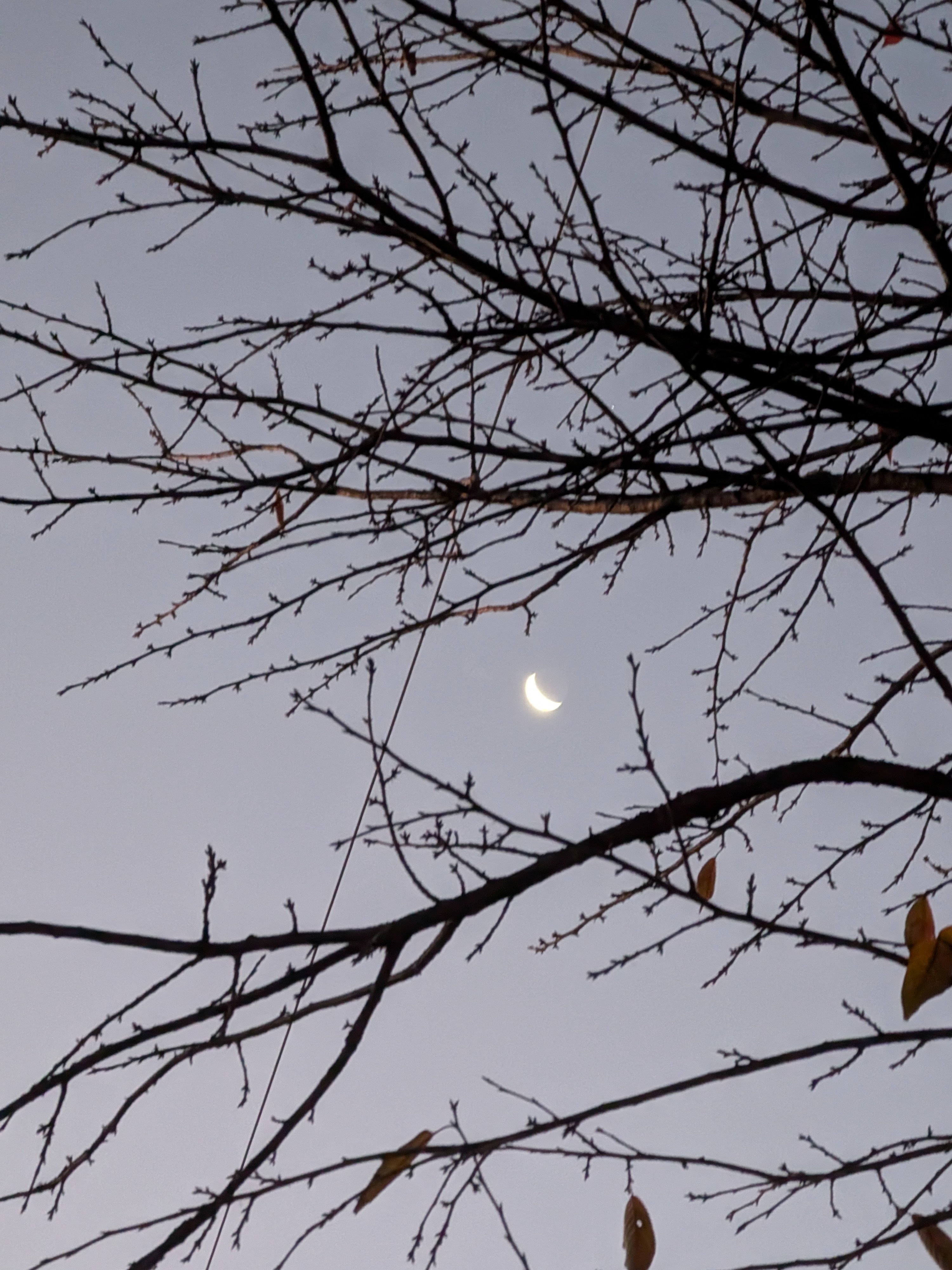 出勤時に空を見上げたら、あのスーパームーンが三日月になっていました。