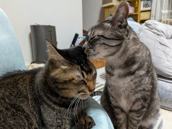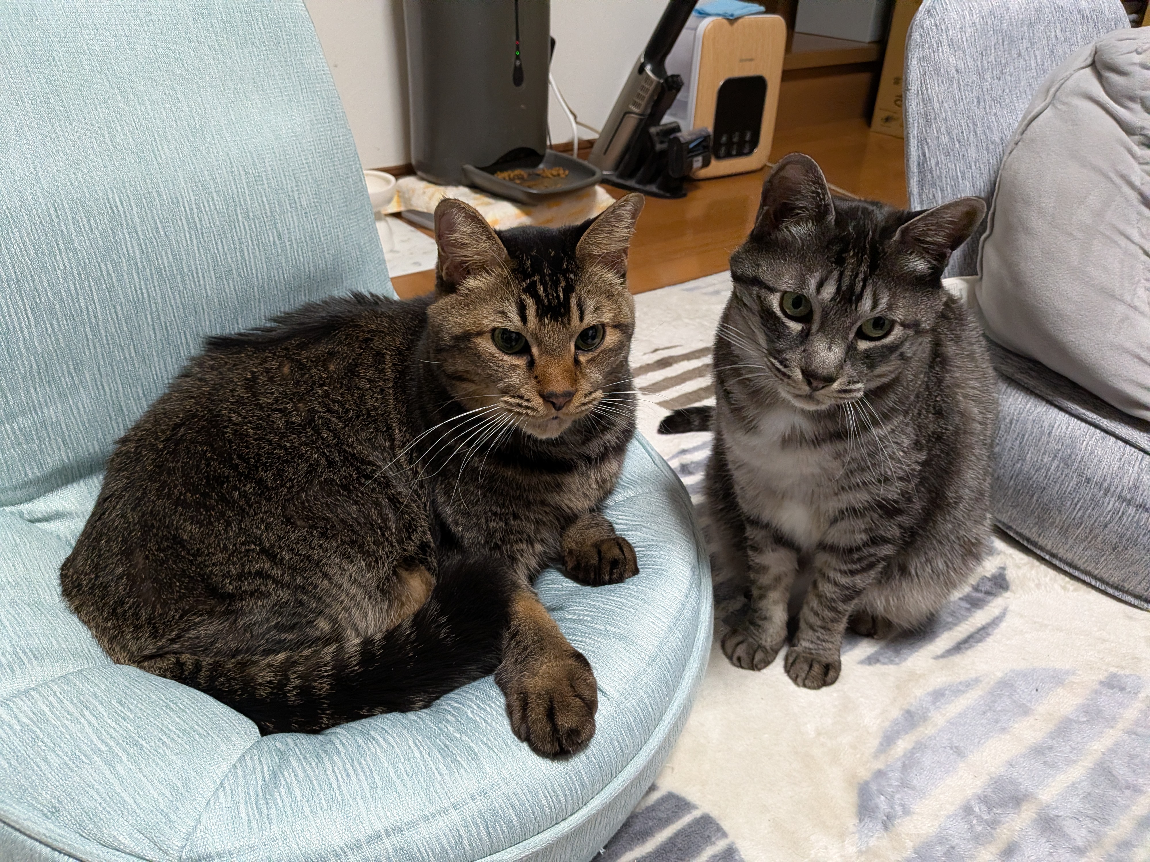 もう1か月? お姉ちゃんがお出かけしているから、お姉ちゃんの椅子をゲット! 今週末は何も用事がなくて、だらだらと過ごすつもりだったので にゃんズと一緒にリビングでごろごろ。 あっという間に1月も終わるということに驚きですね。 でも、にゃんズは人間の4倍早く月日が流れるそうなので こういうのんびりした日があってもいいよね。