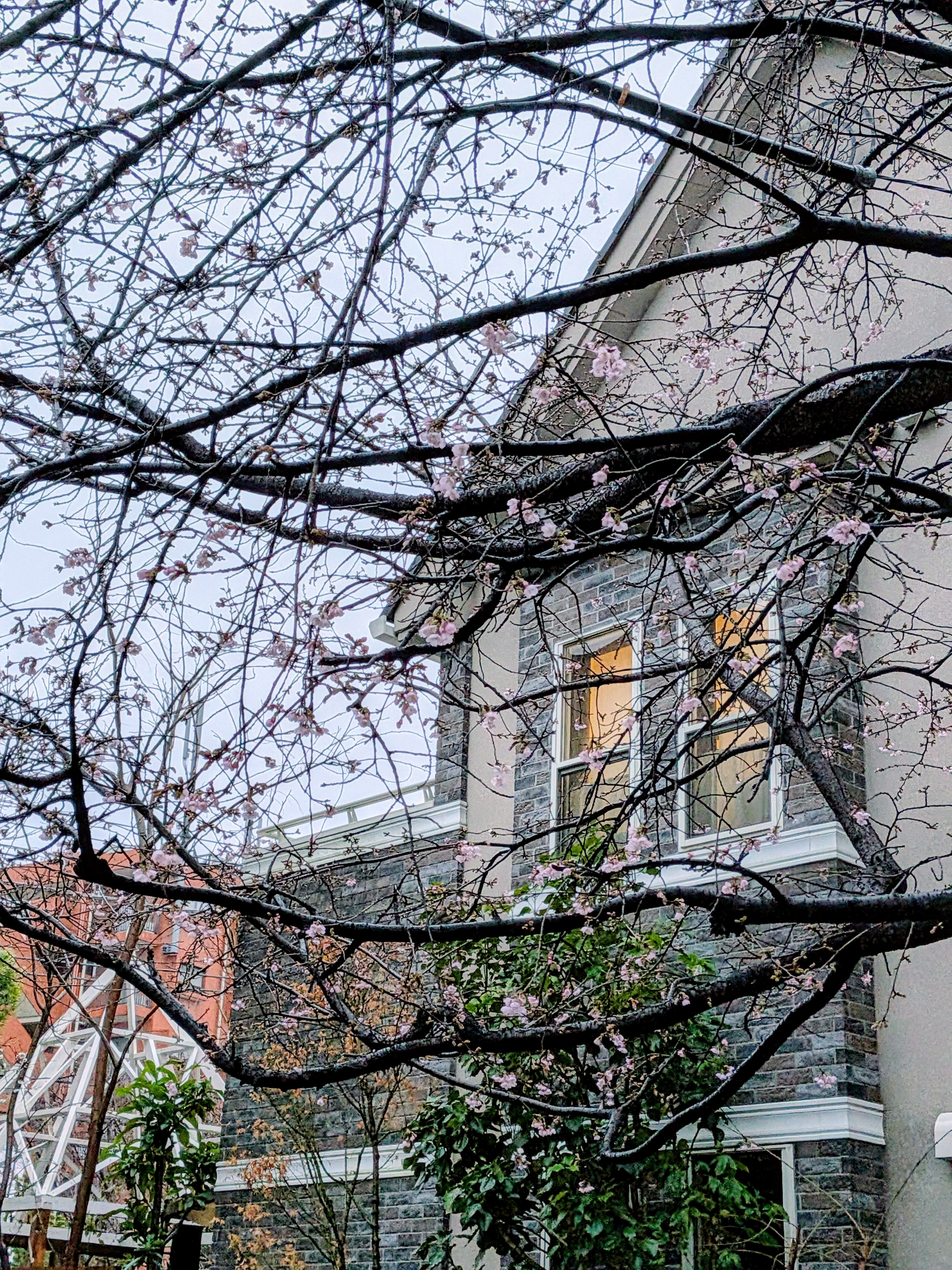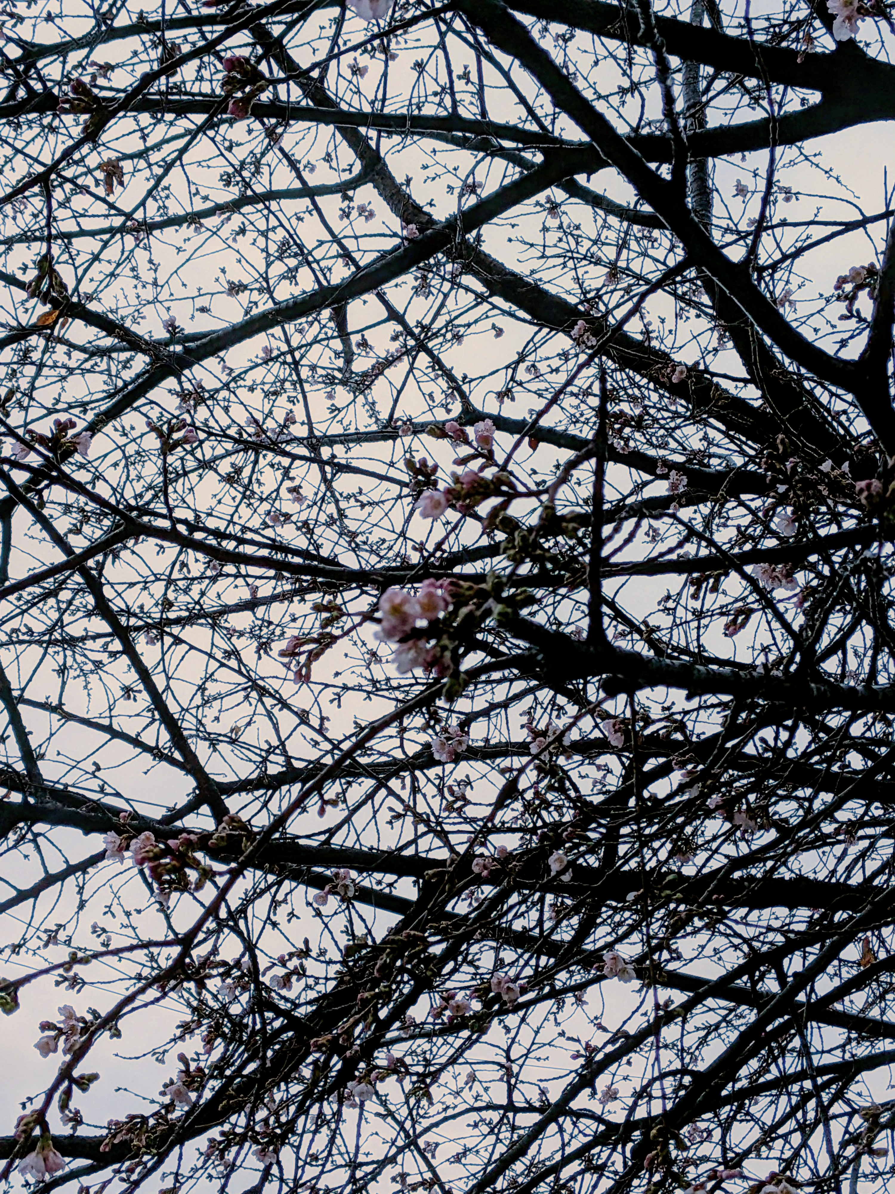 咲き始めてしまったうっかりさんな桜を見ながらの出社。