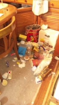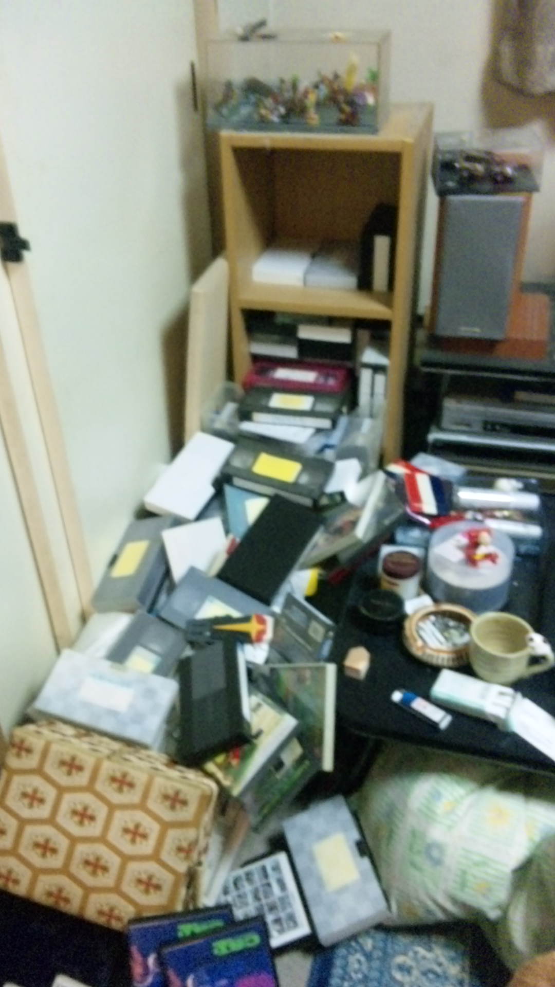 戸棚から様々なものが落ち、食器が割れ、深夜まで片づけに追われたこと。