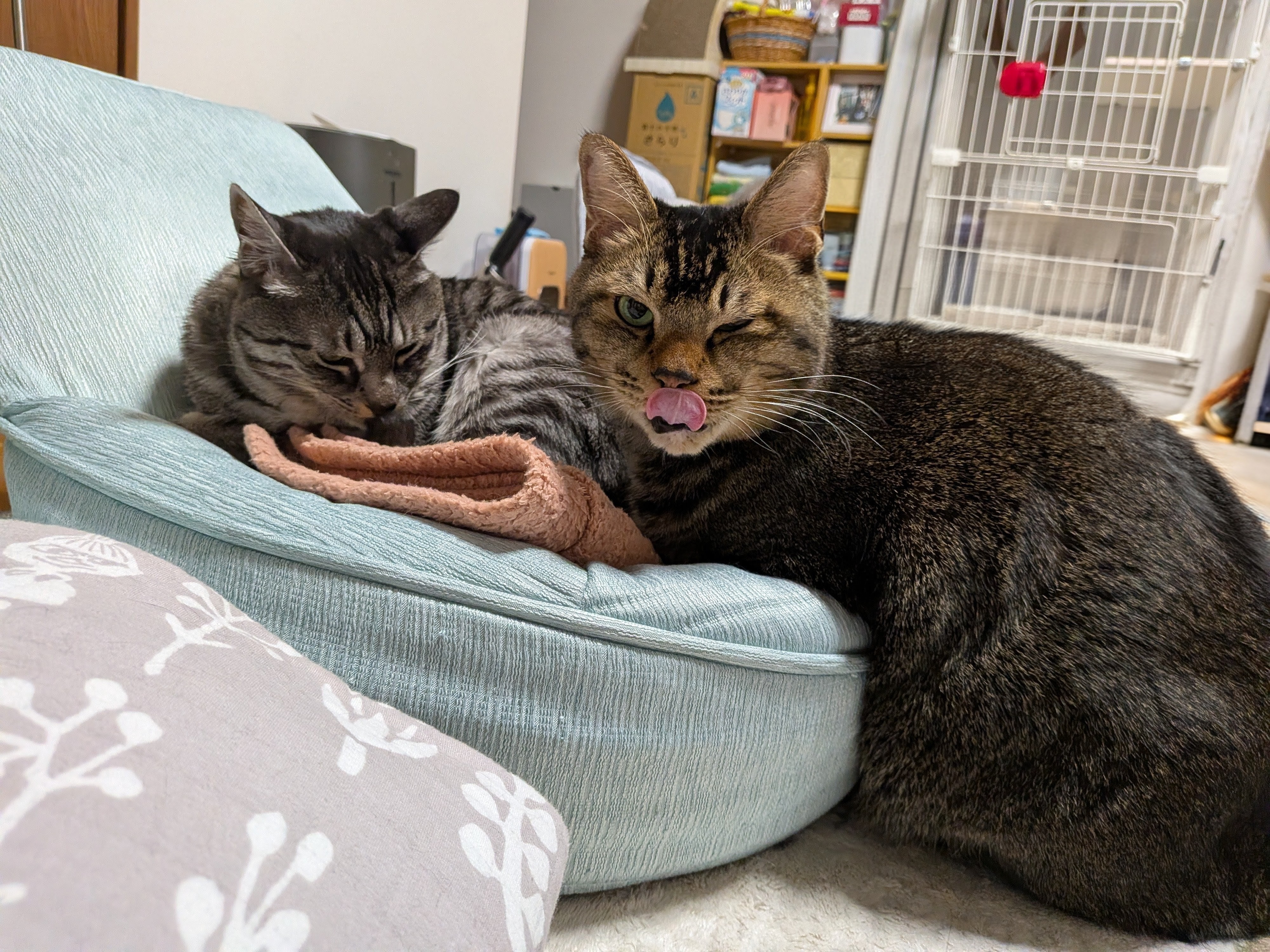 魁ちょが潜り込んでいるところに、みこちが侵入したら狭かったそうで
