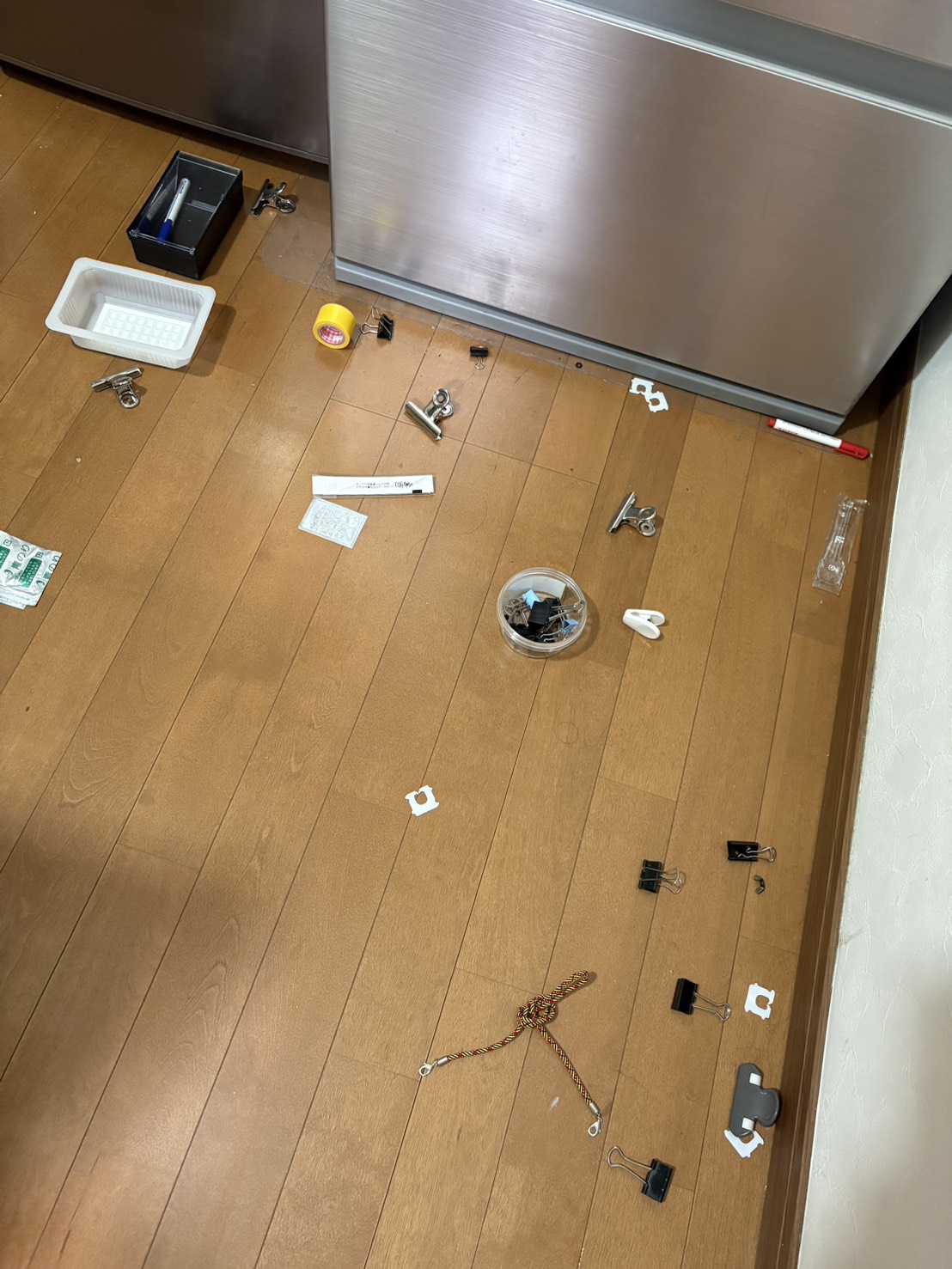 帰宅後の娘からキッチンの床に小物が散らばっていると画像が送られてきたのですが
