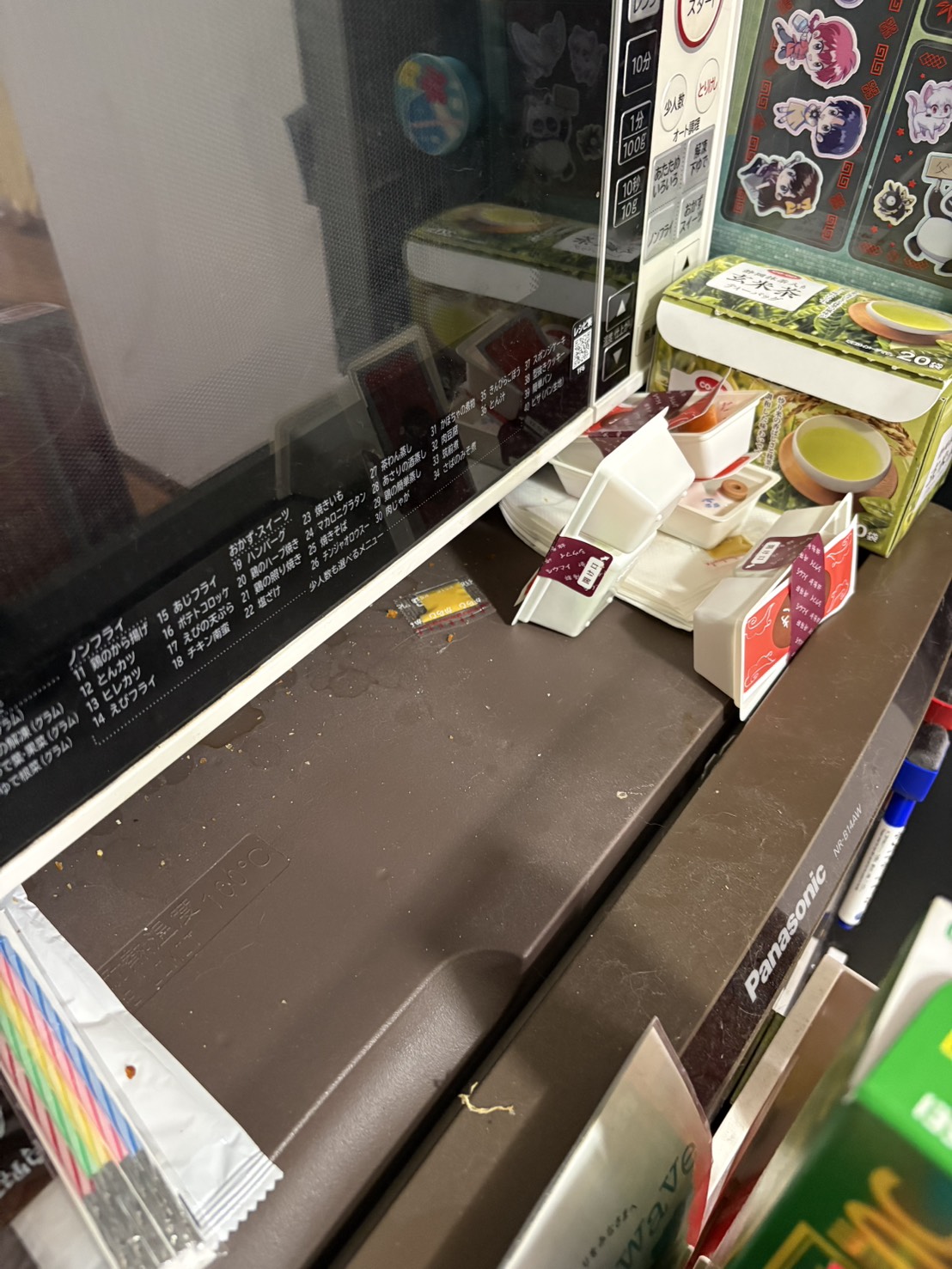 どうやら電子レンジの台にジャンプして、手前に置いてあった小物を落としたようです・・・