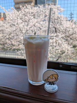 それから、窓辺から桜が見れるカフェで「ゆず香る桜オレ」を堪能し